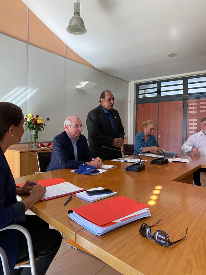 En compagnie de la commissaire déléguée de la République en Province Nord Marie-Paule TOURTE-TROLUE, ils ont assisté à une présentation de la commune en salle de conseil.