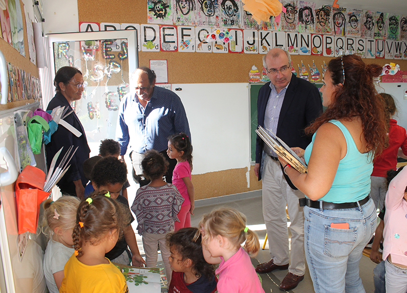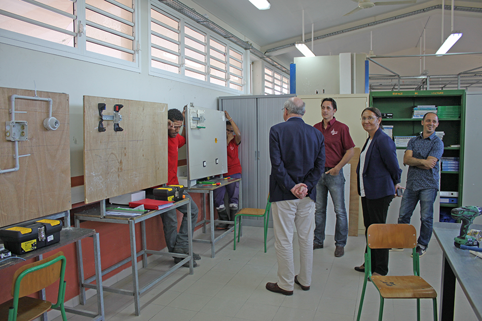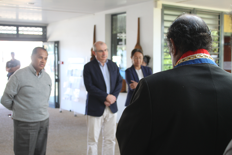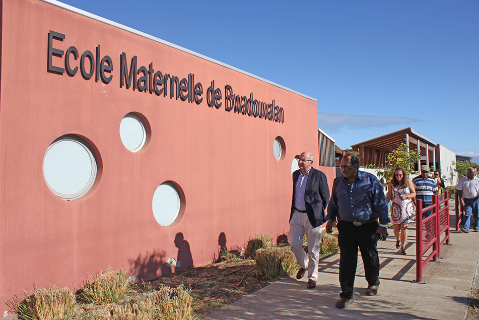 Le maire a ensuite accompagné le Haut-commissaire pour une visite de sa commune et lui a présenté certains projets co-financés par l’État, dont l'Ecole maternelle de Bwadouvalan, l'Antenne du Lycée Professionnel, la Médiathèque Louis Bastien, le Port de Pandop et la future piscine en eau de mer.